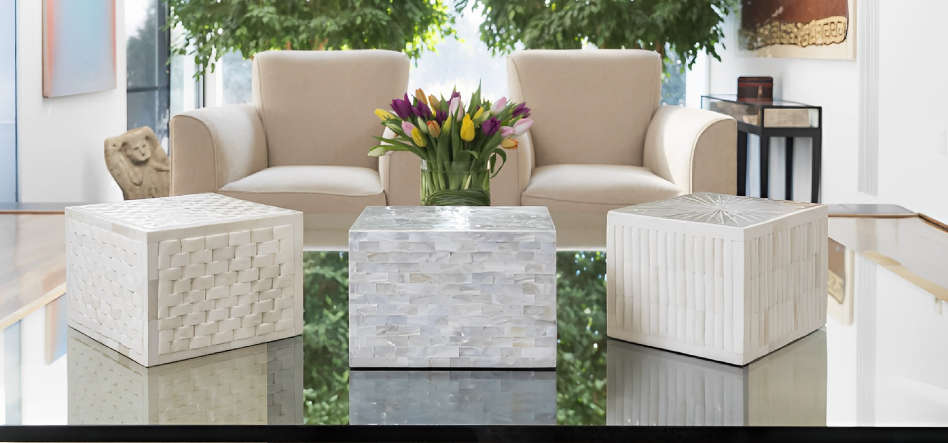 Original price $ 0.00 - Original price $ 995.00Original price $ 0.00$ 695.00 - $ 1,595.00$ 695.00 - $ 1,595.00Current price $ 695.00Modern Memorials is proud to exclusively offer this white bone inlay cremation urn. We designed this urn in collaboration with a renowned Indian ar...
